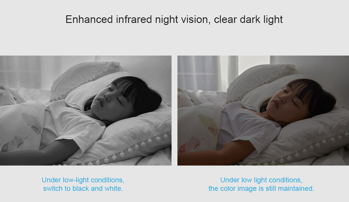 Với ông kính khẩu độ lớn F1.4 kết hợp với đèn hồng ngoại 940nm giúp chiếc Camera thông minh Xiaomi PTZ phiên bản 2K (2304 x 1296) có khả năng nhìn đêm cực tốt, nó có thể cung cấp hình ảnh bình thường ngay cả ở đều kiện thiếu sáng.
