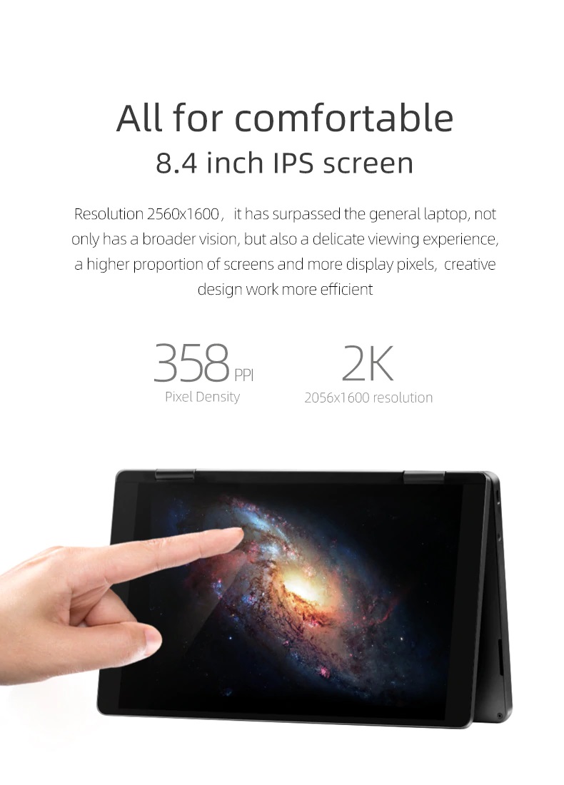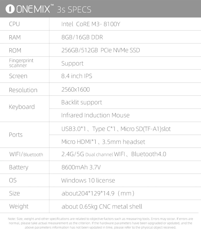 Sở hữu sức mạnh khá ấn tượng và thân máy được là từ kim loại nhưng chiếc mini laptop netbook One mix 3S lại rất nhẹ, máy chỉ nặng có 0.65kg. Điều này giúp bạn có thể cầm chiếc máy tính nhiều sờ trên tay mà không hề mỏi. Ngoài ra chiếc mini laptop còn sở hữu hàng loạt tính năng cao cấp như bảo mật vân tay, màn hình 8.4 inch xoay lật 360, độ phân giải 2K 2560×1600 hỗ trợ bút cảm ứng.