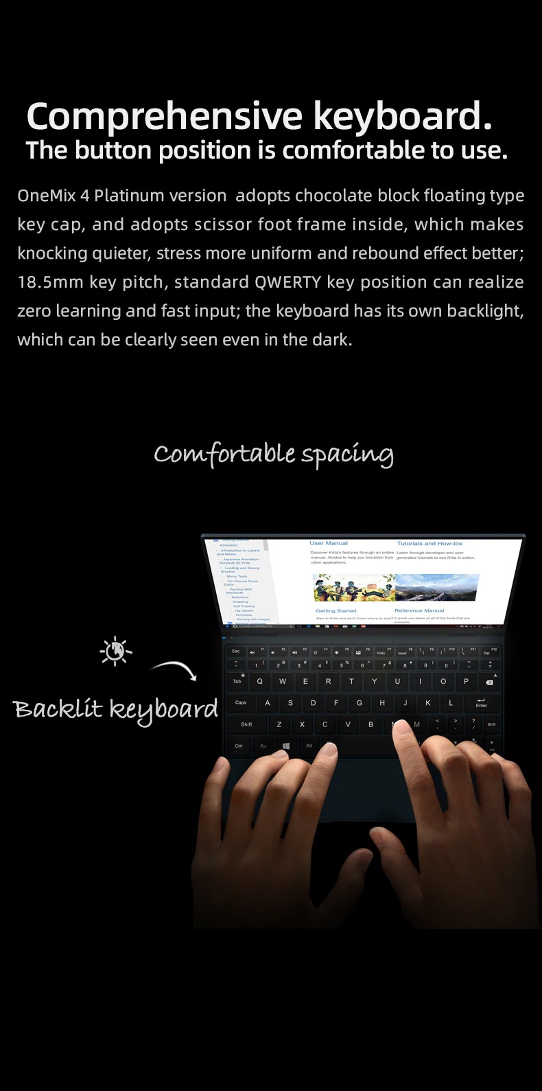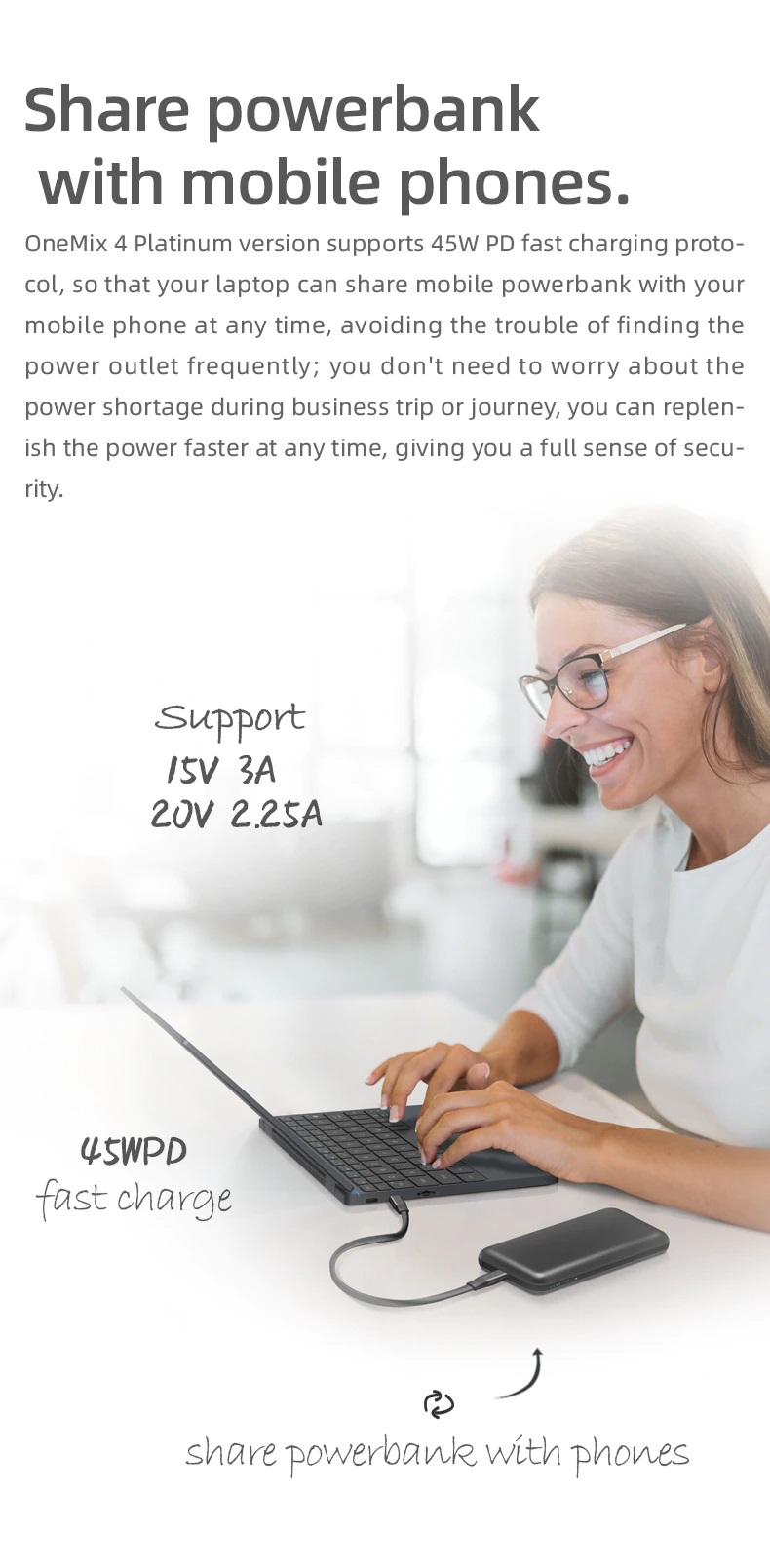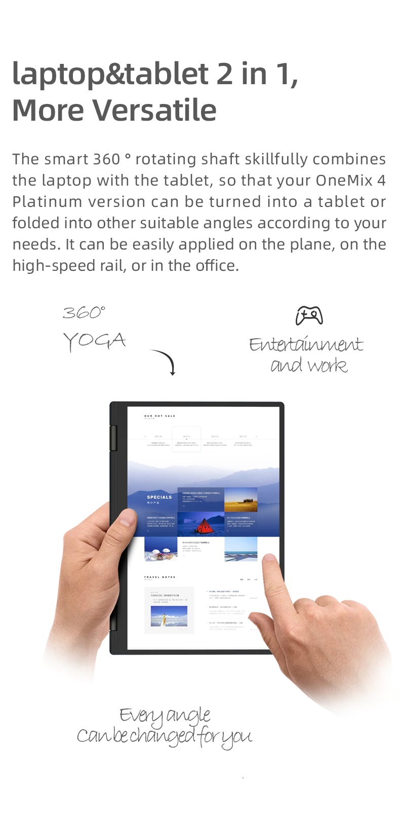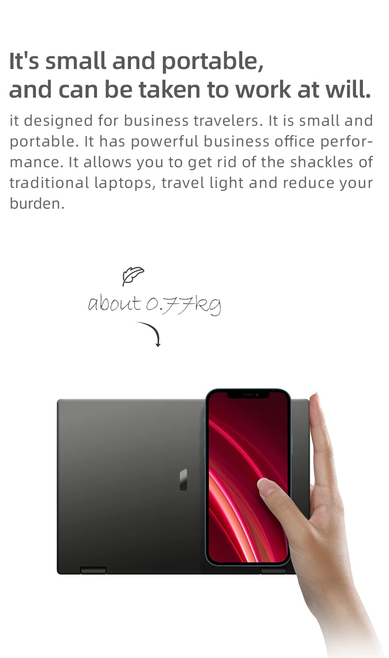Là thiết kế cho doanh nhân, chiếc laptop Mini onemix 4 được thiết kế ngỏ gọn giụp bạn làm việc mọi lúc, mọi nơi mà không cần bận tâm đến việc phải mang theo túi sách để đựng laptop của mình. Với màn hình 10.1inch vừa đủ để là việc hiệu quả và trọng lượn chỉ 0.77kg giúp bạn dễ dàng mang theo người khi ra ngoài.