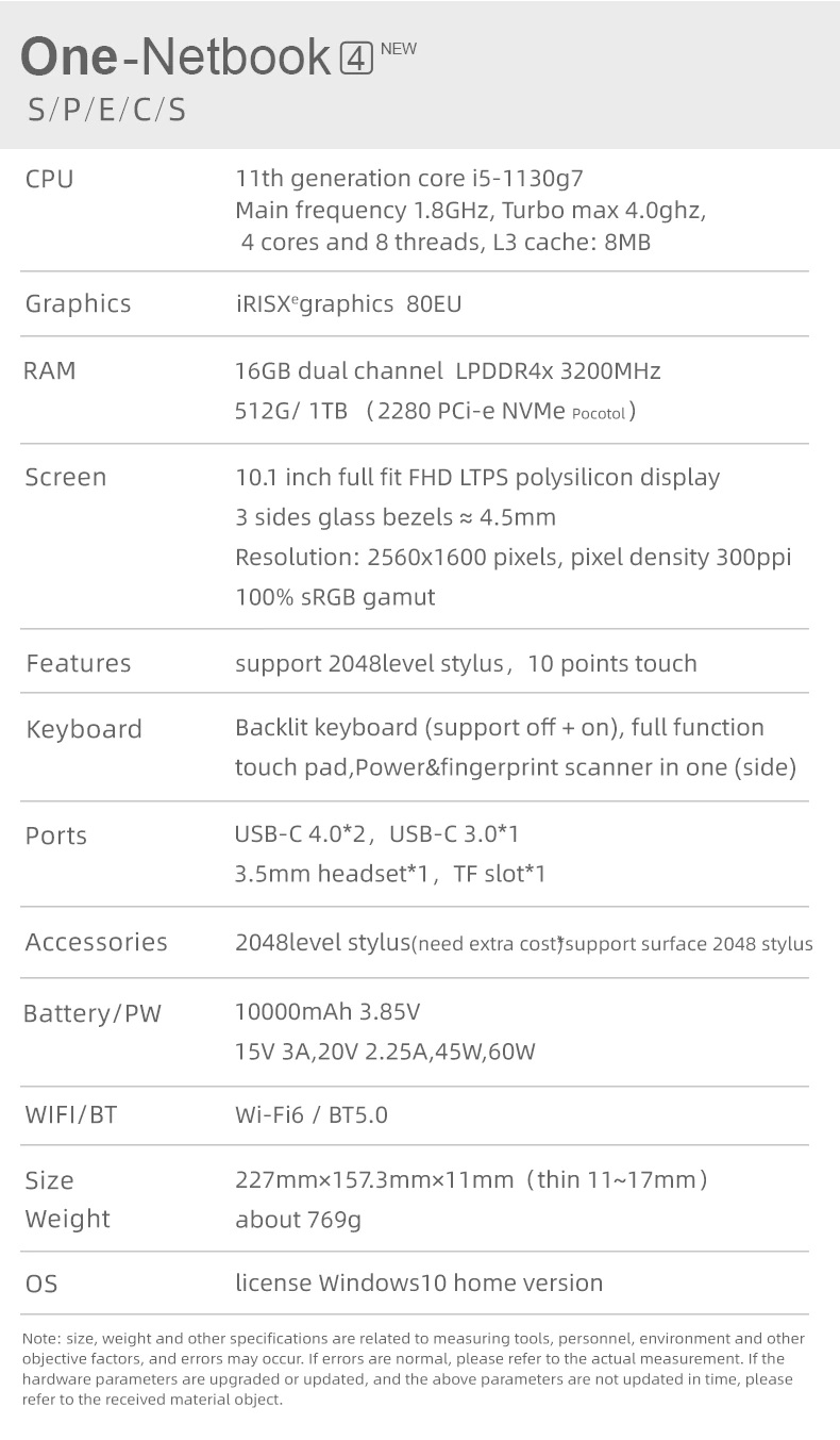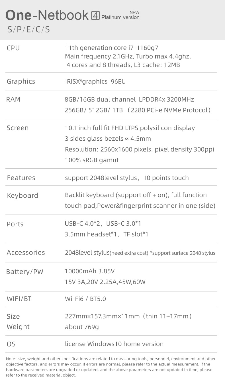 Chiếc laptop mini thế hệ thứ 4 của one netbook được trang bị chip intel core i5/i7 thế hệ thứ 11 với 4 nhân và 8 luồng, nó có thể sử lý nhanh gọn công việc hàng ngày cũng nhưng đáp ứng tốt nhu cầu giải trí. Đi kèm với chip khủng thì chiếc onemix 4 còn có 16GB ram DDR4 sung nhịp lên đến 3200 MHz và ổ cứng 512GB /1T chuẩn PCi-e NVMe có tốc độ đọc nghi nhanh hơn ổ SSD thông thường.