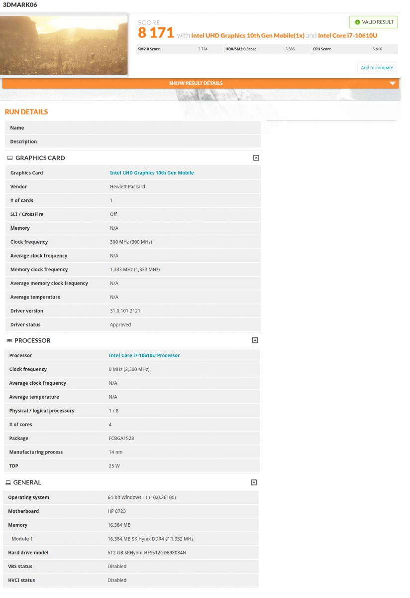 Bảng tổng hợp hiệu năng máy – HP với i7-10610U & Intel UHD Graphics