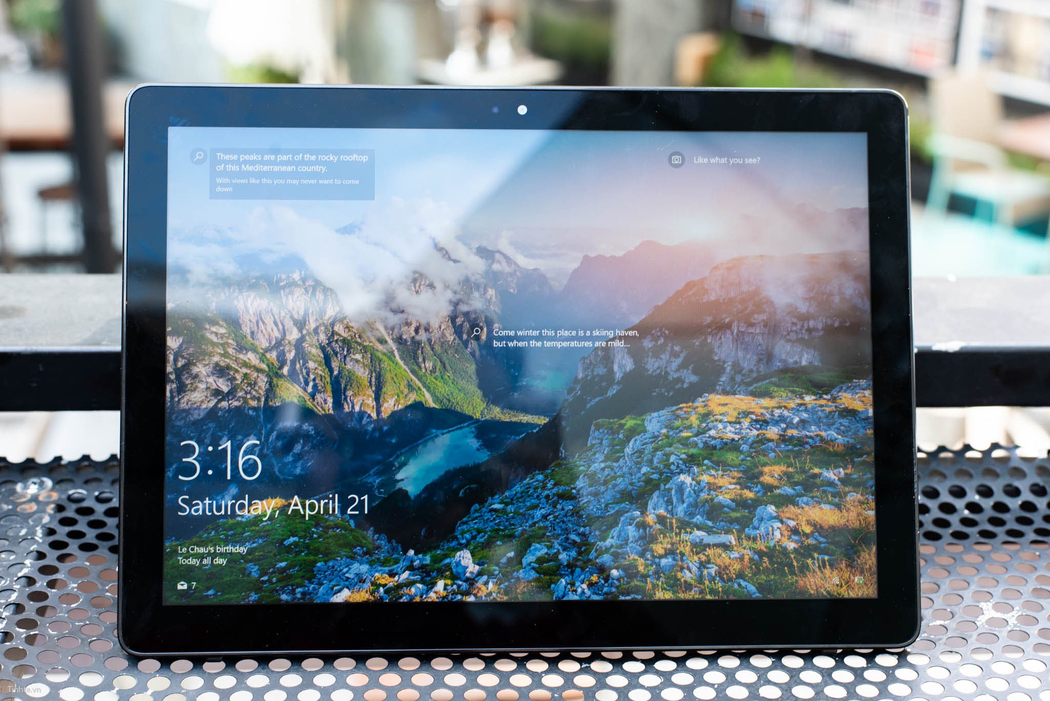 Màn hình của chiếc Dell Latitude 5285 có kích thước 12.3 inch độ phân giải 1920 x 1280 với tỷ lệ khung hình 3:2 với viền màn hình 1,6cm. Tuy viền màn hình khá dầy nhưng bù lại là sự biền bỉ của chiếc Latitude 5285, Chiếc máy này dù là tablet nhưng vẫn đạt tiêu chuẩn độ bền quân sự MIL-STD 810G, chịu va đập và nhiệt độ khắc nghiệt. Bảo vệ cho màn hình là lớp kính cường lực Gorilla Glass 4 và viền dày cũng sẽ giúp chiếc máy hấp thụ chấn động tốt hơn, màn hình khó vỡ hơn