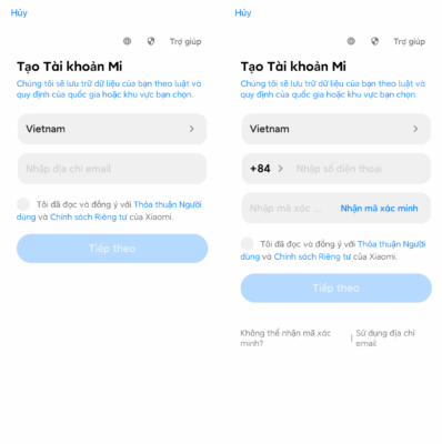 • Chọn quốc gia Việt Nam và nhập email/số điện thoại sau đó nhấn tạo tài khoản