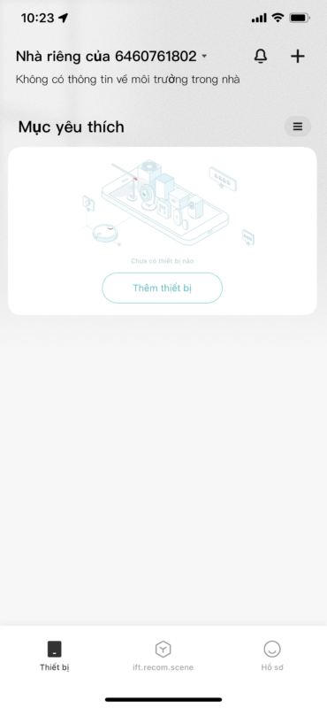 Bước 4: Sau khi đăng nhập thành công, bạn sẽ được chuyển đến giao diện chính. Chọn “Thêm thiết bị” sau đó tìm thiết bị cần kết nối.
