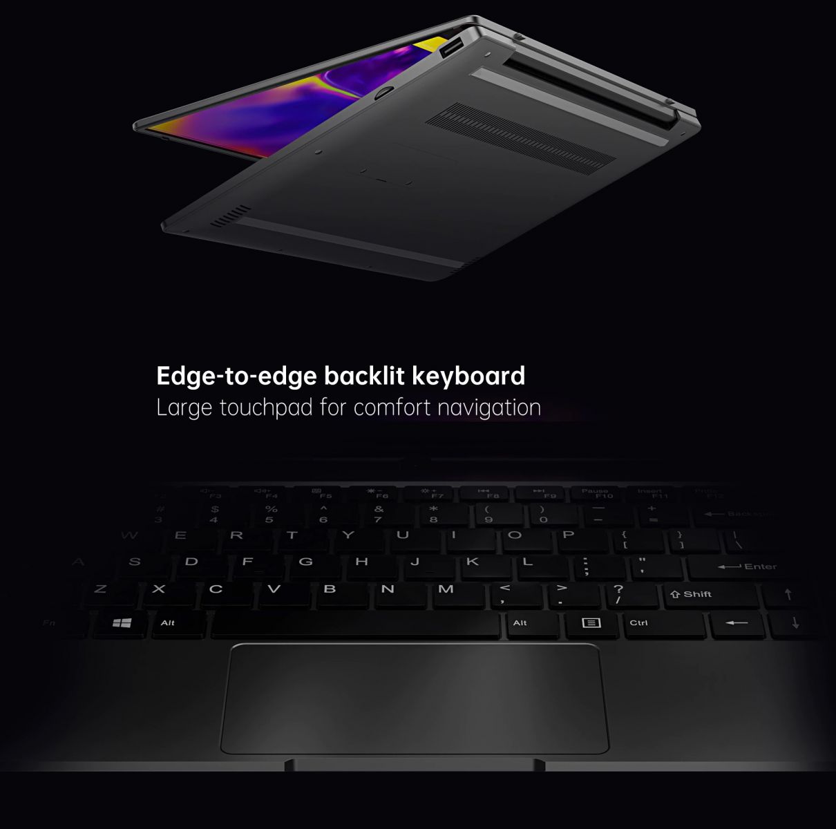 Bàn phím của chiếc GT Book có thiết kế đầy đủ với các phím bấm có khoảng cách chuẩn để đảm bảo người dùng sẽ không bị gõ nhầm. Hành chình của phím cũng khá tốt giúp cảm giác ngõ trung thực hơn và phím tích hợp đèn nền giúp bạn có thể làm việc trong môi trường thiếu sáng.