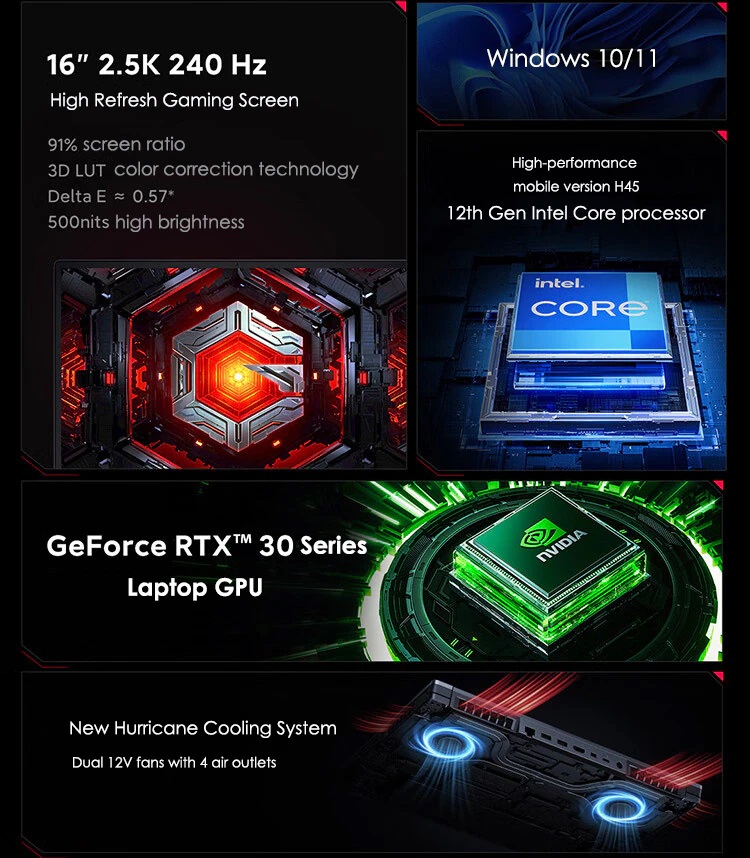 | CPU | Intel Core i7-12650H/i9-12900H/AMDRyzen™7 6800H |