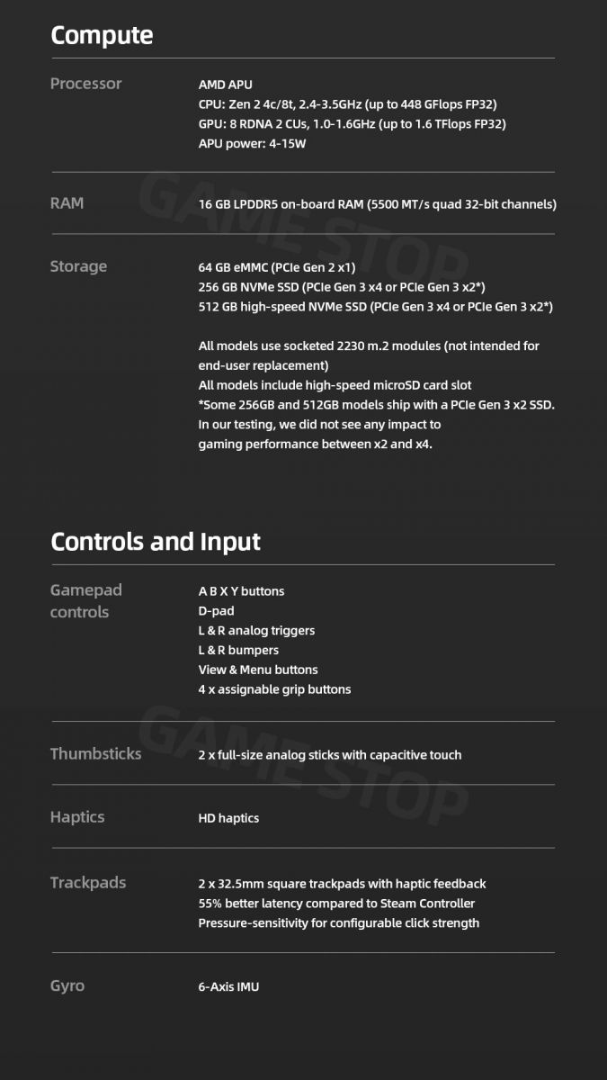 GPU: 8 RDNA 2 CUs, 1.0-1.6GHz (up to 1.6 TFlops FP32)