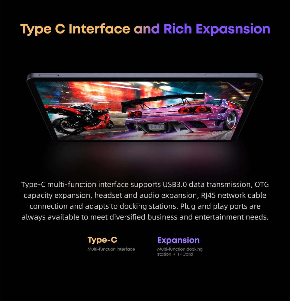 Chiếc Hipad Air hộ trợ công Type-C bạn có thể sử dụng cổng này để truyền dữ liệu,kết nối với tai nghe, kết nối cáp mạng RJ45.