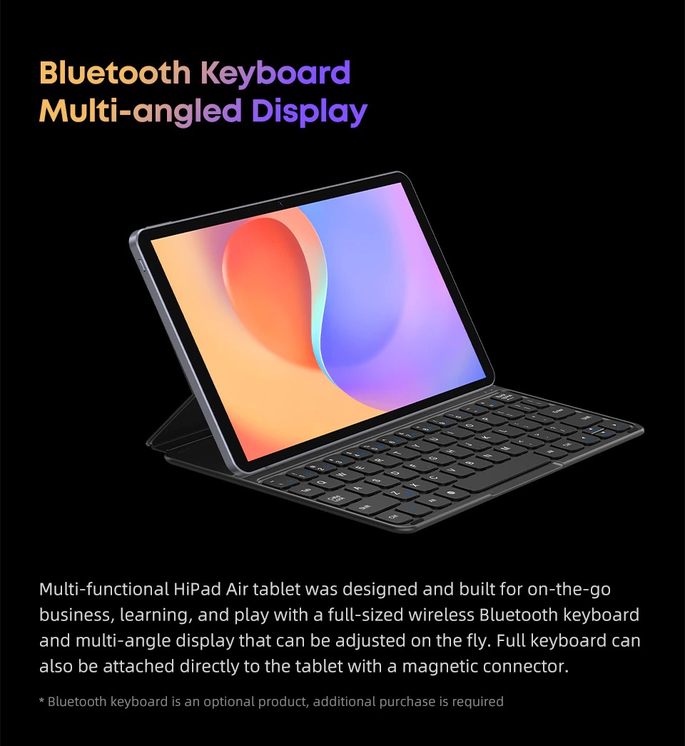 Các máy tính bảng android hiện này không chỉ còn là thiết bị giải trí đơn thuần nữa, mà giờ đây chúng còn được thiết kế để xử lý một số công việc văn phòng. Chính vì vậy chiếc hipad air cũng được hãng Chuwi tích hợp bàn phím vật lý để hỗ trợ người dùng tốt hơn khi làm việc.