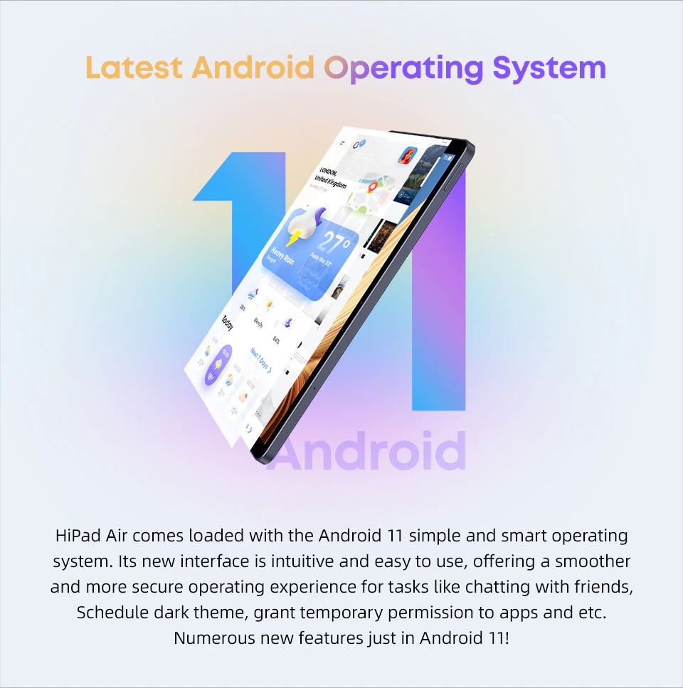 Hipad Air được cài hệ điều hành Android 11 rất thân thiệt với người dùng. Bàn sẽ hoàn toàn cảm thấy thoải mái khi sử dụng.