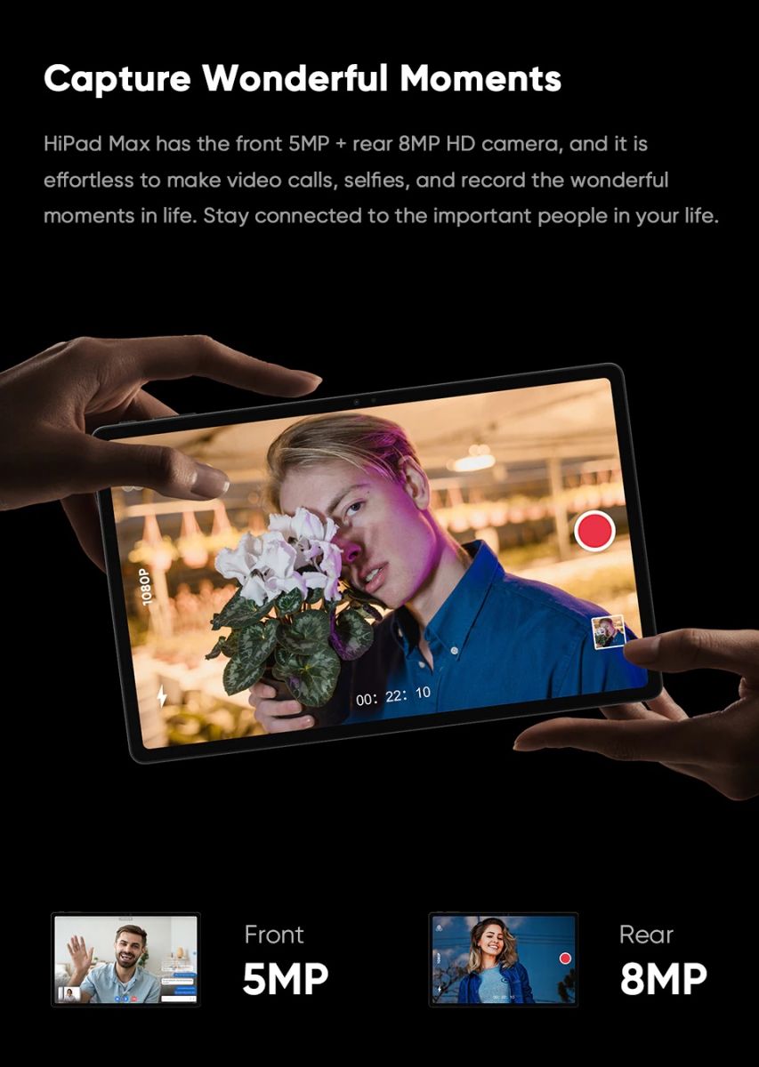 HiPad Max với màn hình 10,36 inch độ phân giải 2K, cho phép bạn thưởng thức hình ảnh chung thực, cung cấp trải nghiệm chơi game và xem phim ngoài mong đợi. Màn hình của hipad max chiếm 84% diện tích.