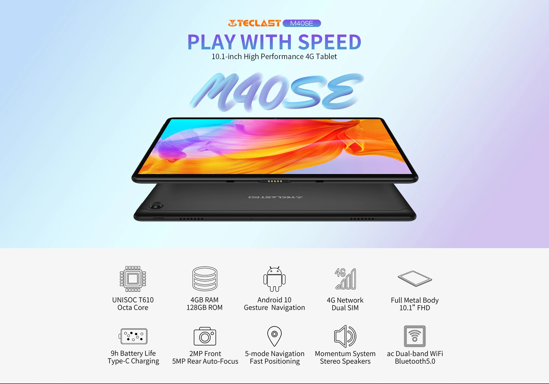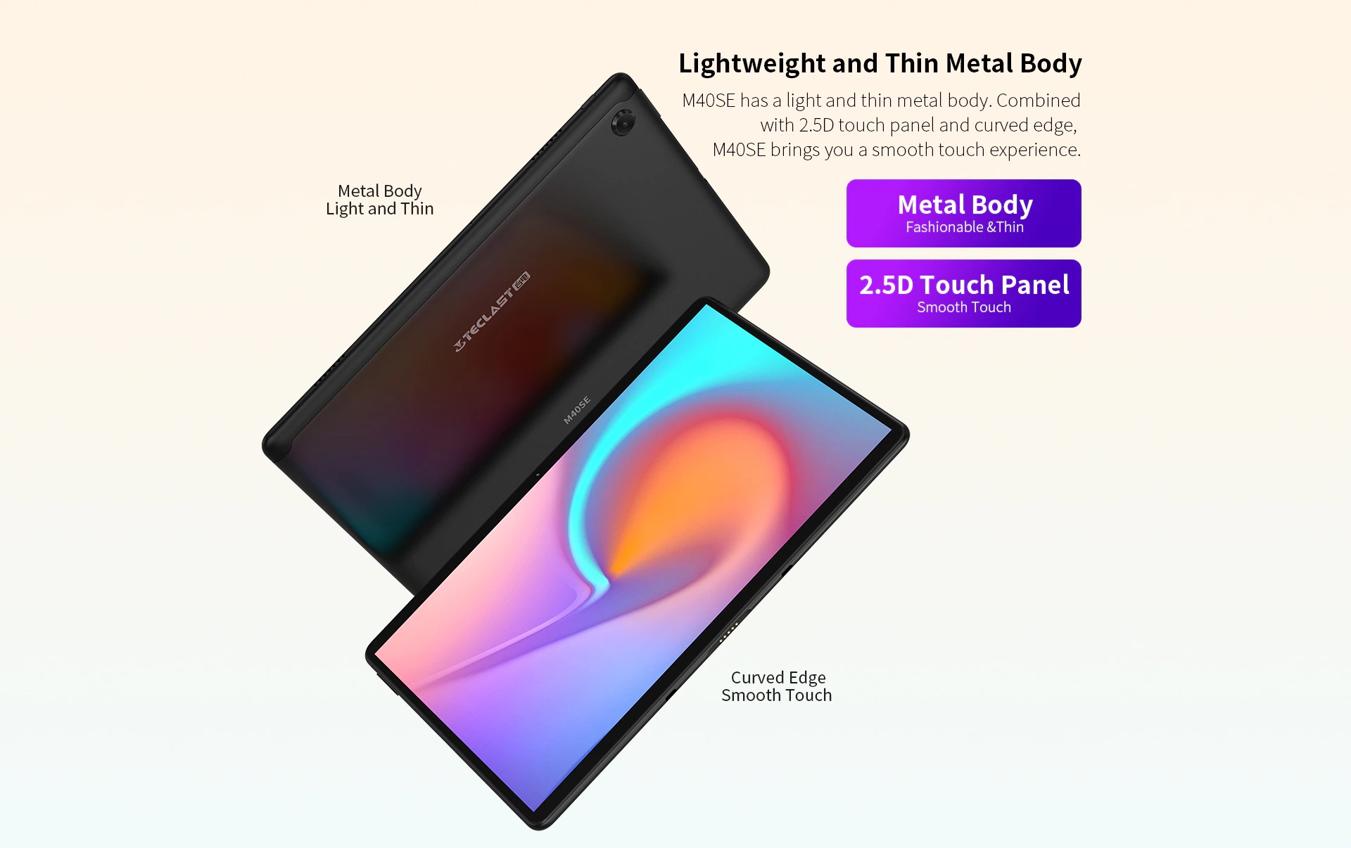 Máy tính bảng teclast M40SE là dòng máy tính bảng chạy hệ điều hành android 10 vừa được tung ra thị trường. Được kê thừa từ thiết kế từ sự thành công của mẫu M40, chiếc teclast M40SE có thiết kế thân kim loại viện máy được bo tròn mềm mại khiến chiếc M40SE khá cao cấp.