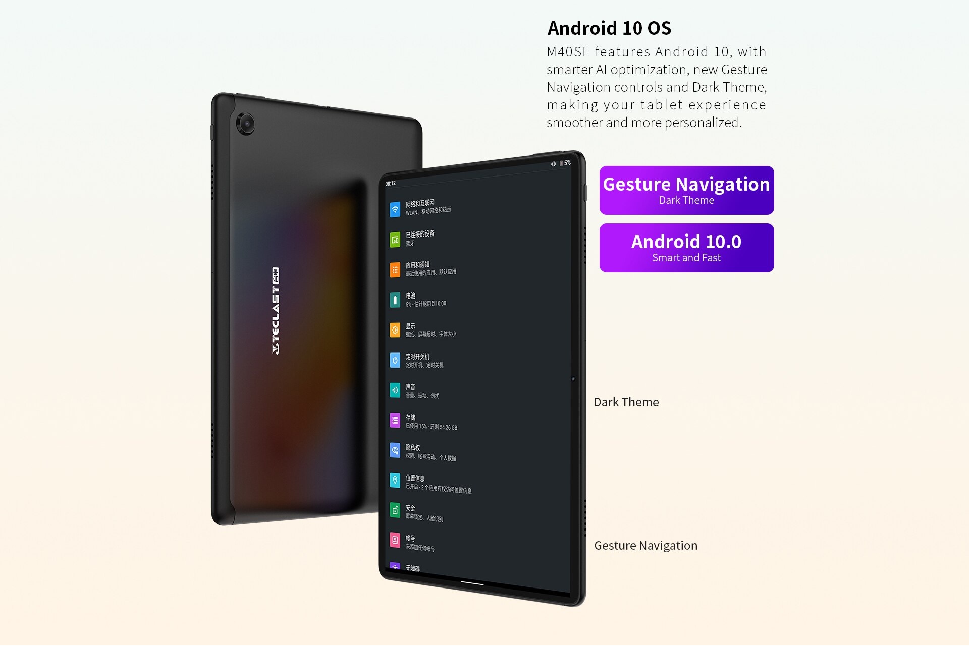 Teclast M40SE được cài đặt hệ điều hành android 10 mới nhất, hỗ trợ tất cả các phần mềm hiện hành.