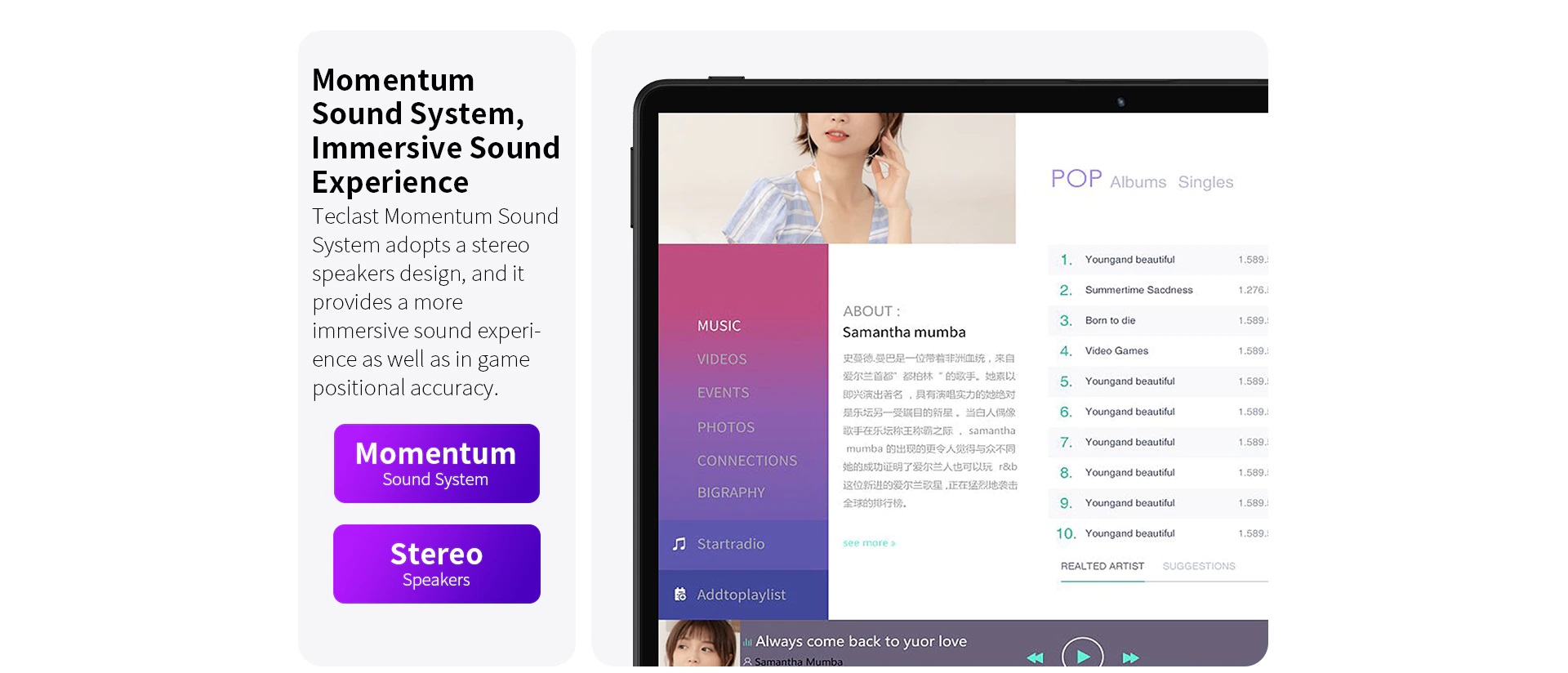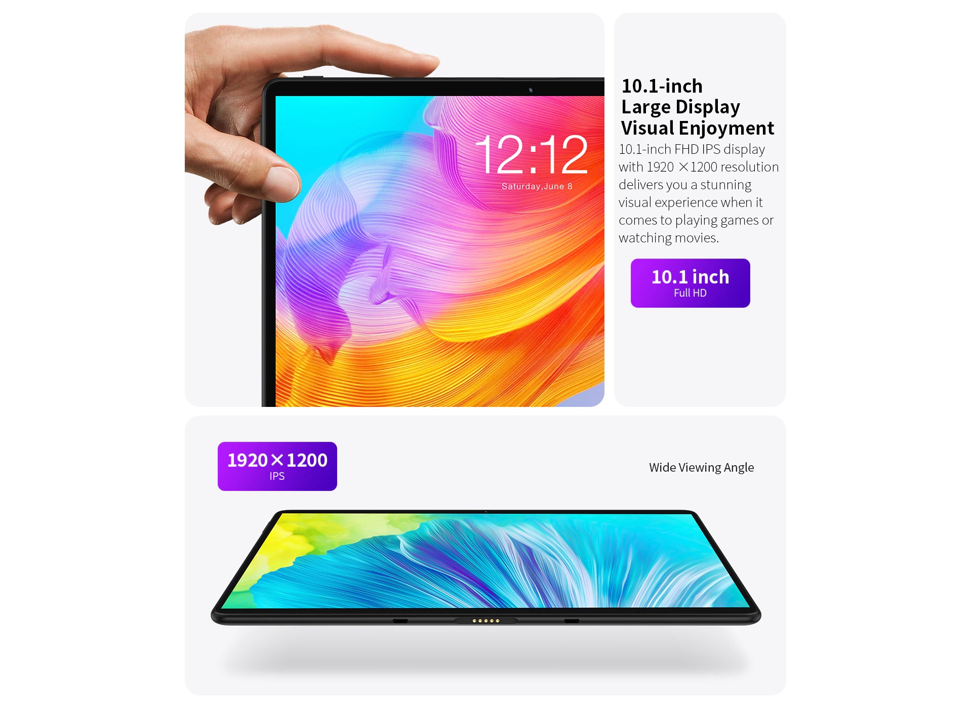 Màn hình 10.1 inch IPSđộ phân giải 1920 × 1200 của chiếc teclast M40SE có khả năng hiển thị hình ảnh sắc nét trung thực.