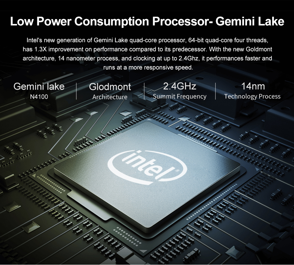 • Intel Celeron N4100 Quad-core 2,4 GHz tối đa