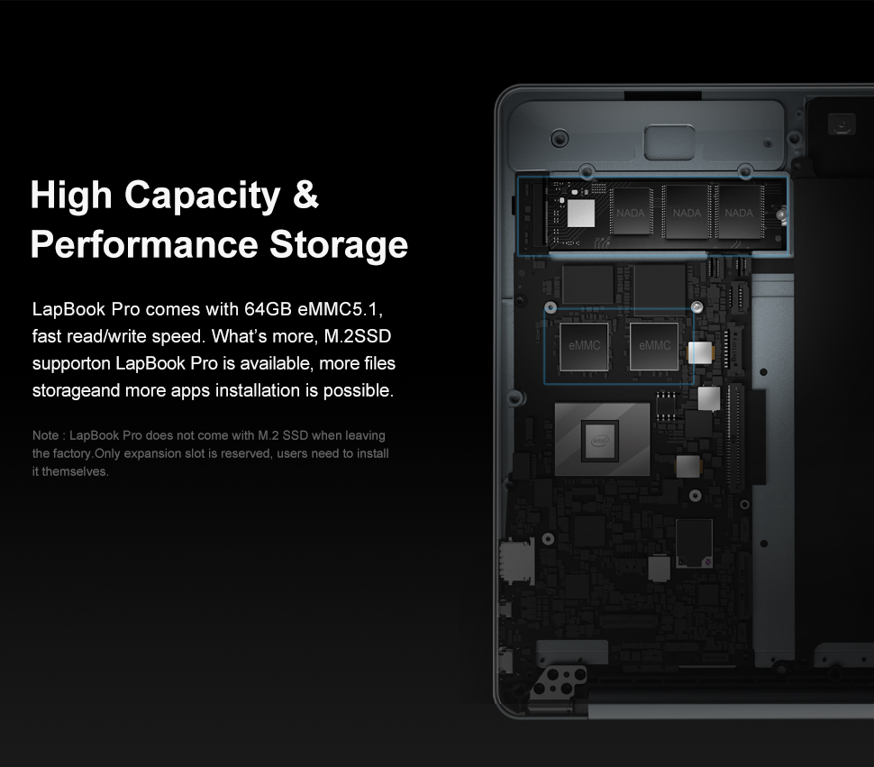 • Ổ cứng 64eMMC/ SSD128G/ SSD 256G