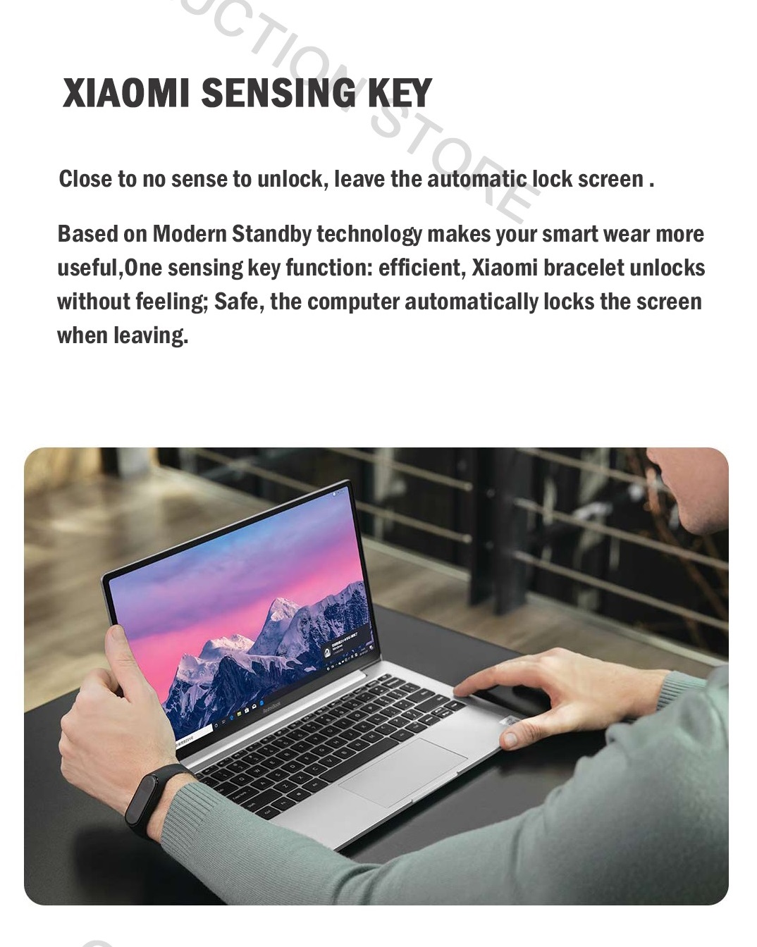 Xiaomi Redmibook 13 hỗ trợ khóa và mở máy thông minh, nó có thể kết hợp với chiếc vòng đeo tay máy có thể tự động khóa khi bạn dời đi.