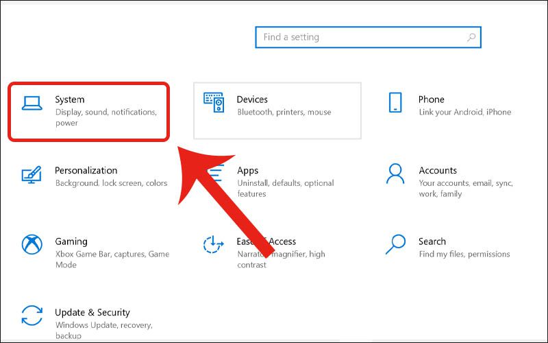 - Bước 1: Nhấn tổ hợp phím Windows + I để mở Windows Settings rồi chọn System.