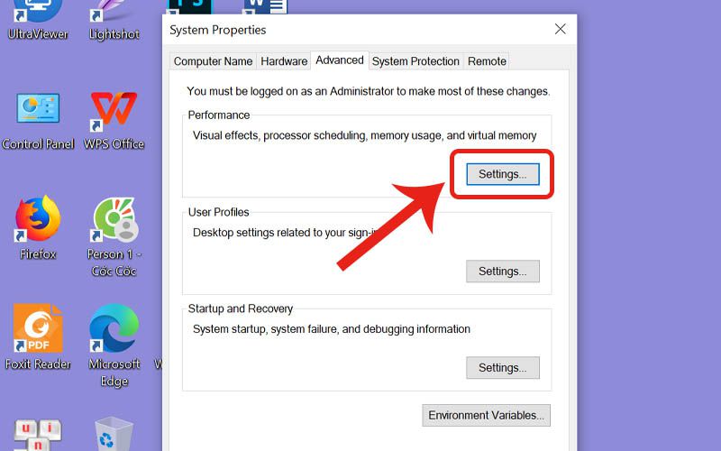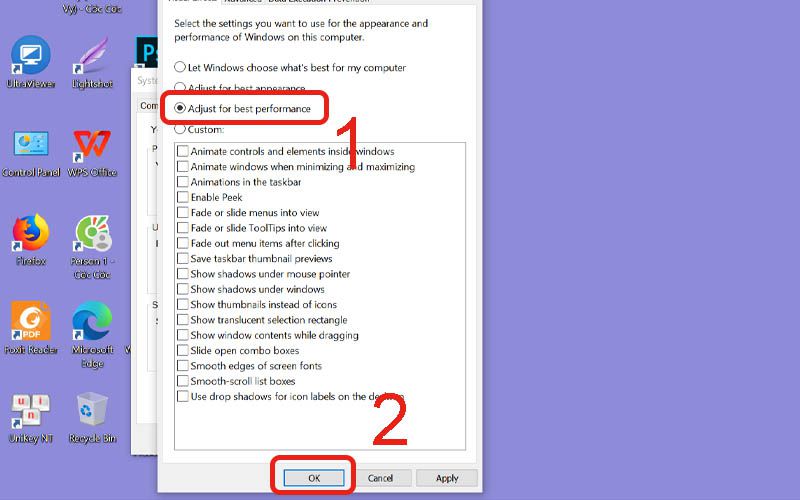 Giải pháp: Vào System → Advanced system settings → Settings (trong Performance) -> Chọn "Adjust for best performance"